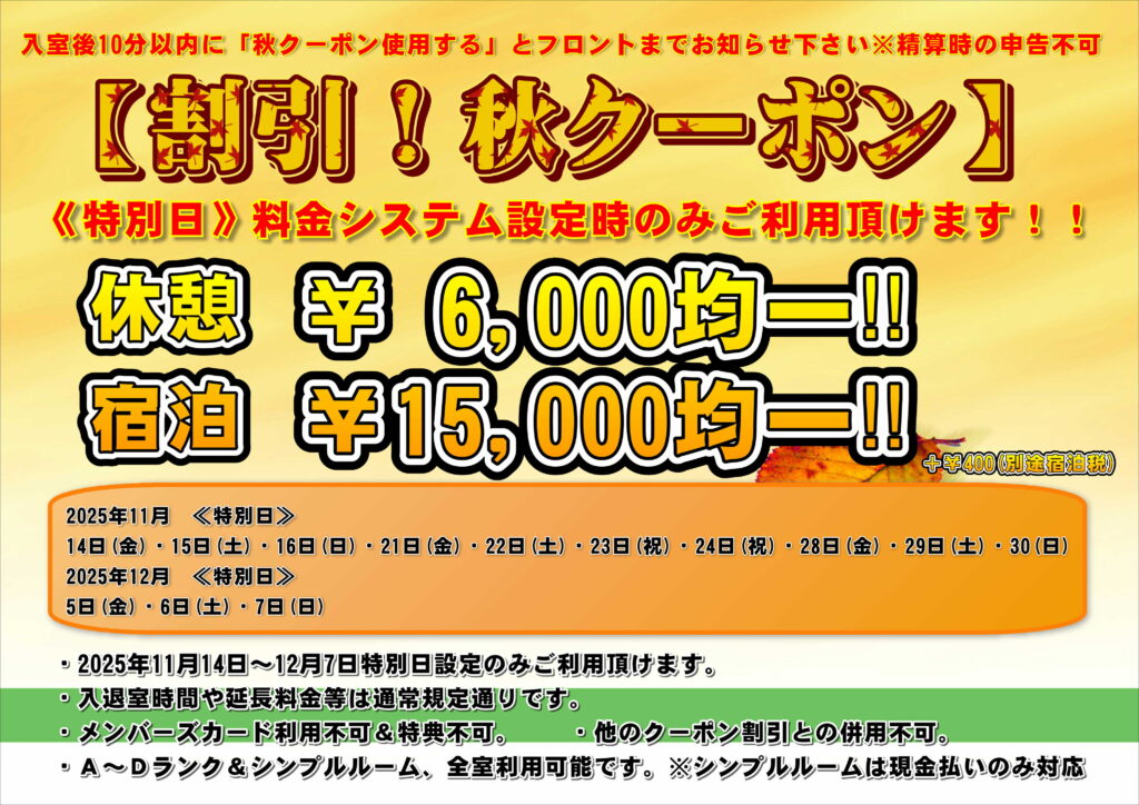 ※シンプルルーム(221・222・223・225・321・322・323・325)ではクーポン①~③利用不可